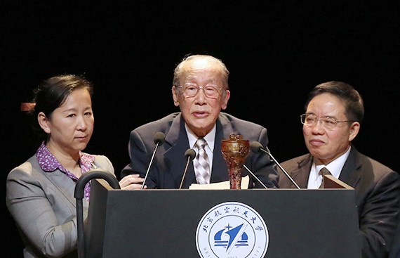 1952年参与组建北航的高校代表、清华大学副校长尤政院士在大会上致辞,向北航师生员工、海内外校友致以诚挚的问候和良好的祝愿。校友代表、中国航天科技集团王巍院士,教师代表、北京伊人99王华明院士,学生代表、北京伊人99宇航学院曲庆渝同学在大会上发言,表示将齐心协力,为在新的历史起点上加快建设扎根中国大地的世界一流大学而共同努力。