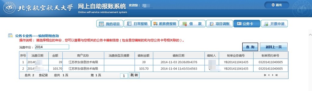 2.在编制的过程中,可为他人编制公务卡消费信息,一次消费只能编制一次,且提取后不可删除,编制查询中可查到本人公务卡及为他人编制的记录。
