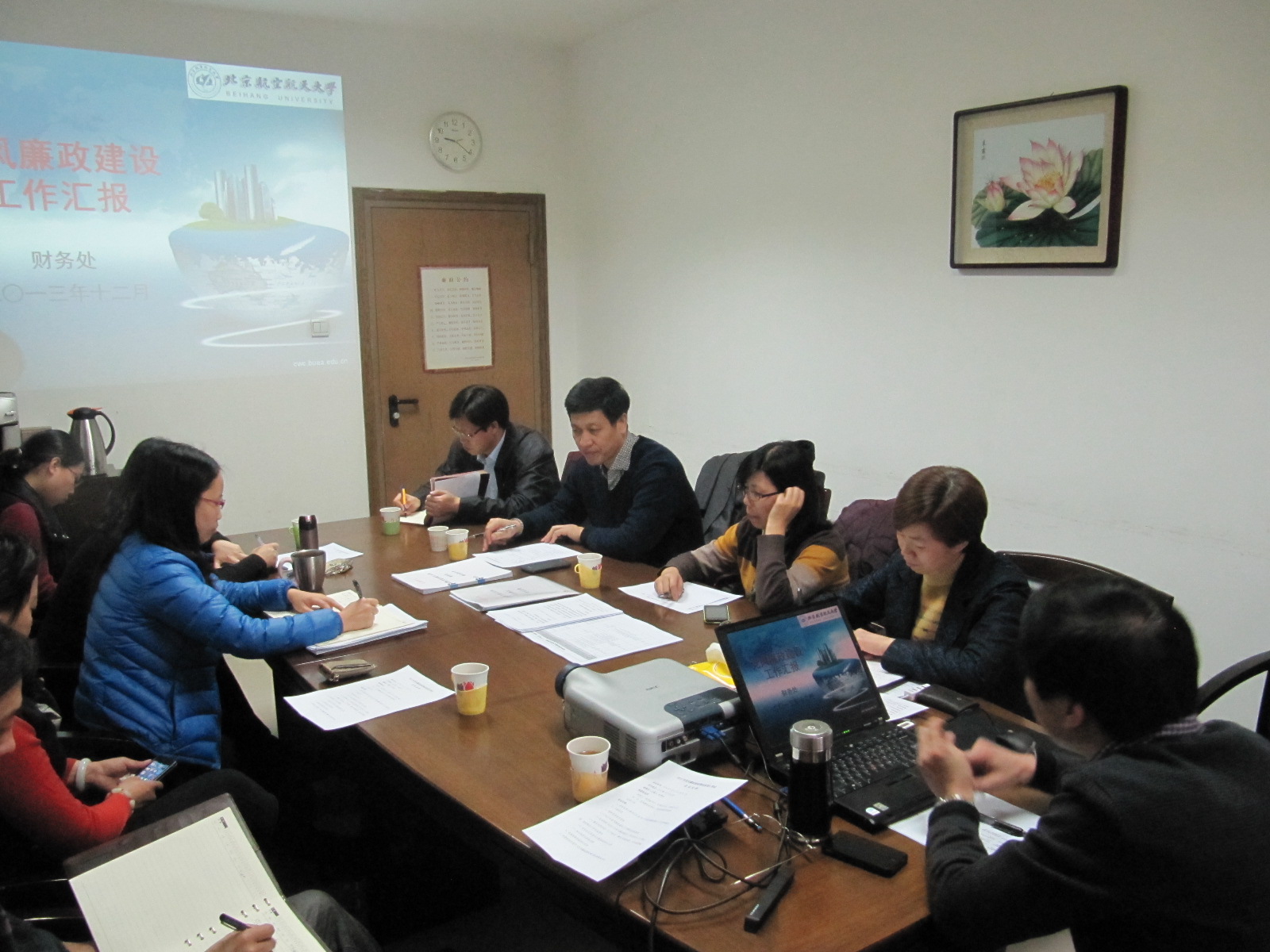 1218日下午,由常务副校长徐惠彬带队,学校纪委副书记张海兰、党风监督员李平等组成检查组,对财务处2013年度党风廉政建设工作的开展情况进行了检查。财务处全体领导班子成员参加了会议。会上检查组听取了财务处对于2013年度廉政建设任务完成情况和廉政风险防控“三个体系”建设工作推进情况的汇报,并查阅了自查报告、“三个体系”建设情况推进情况报告、处务会纪要等材料。徐校长对财务处党风廉政建设工作给予了肯定,并就下一步廉政建设工作提出几点要求:第一,应从财务处审批权限的控制和校内二级单位内部控制两个方面加强风险防控和监督,不断完善内部控制制度,建立健全二级单位内控制度;第二,应采取措施加强财经政策的宣传,提高全校广大师生的风险识别意识和风险防控意识;第三,应加强财务信息公开力度,明确公开内容、范围、时限等事项;第四,应加强廉政风险的信息化防控,丰富信息化防控手段,完善廉政风险预警机制。与会人员还就财务风险的防控措施进行了讨论和交流。