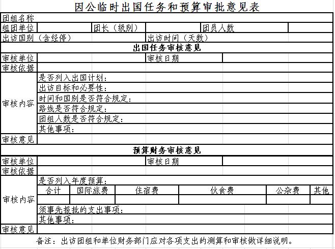 备注:出访团组和单位财务部门应对各项支出的测算和审核做详细说明。