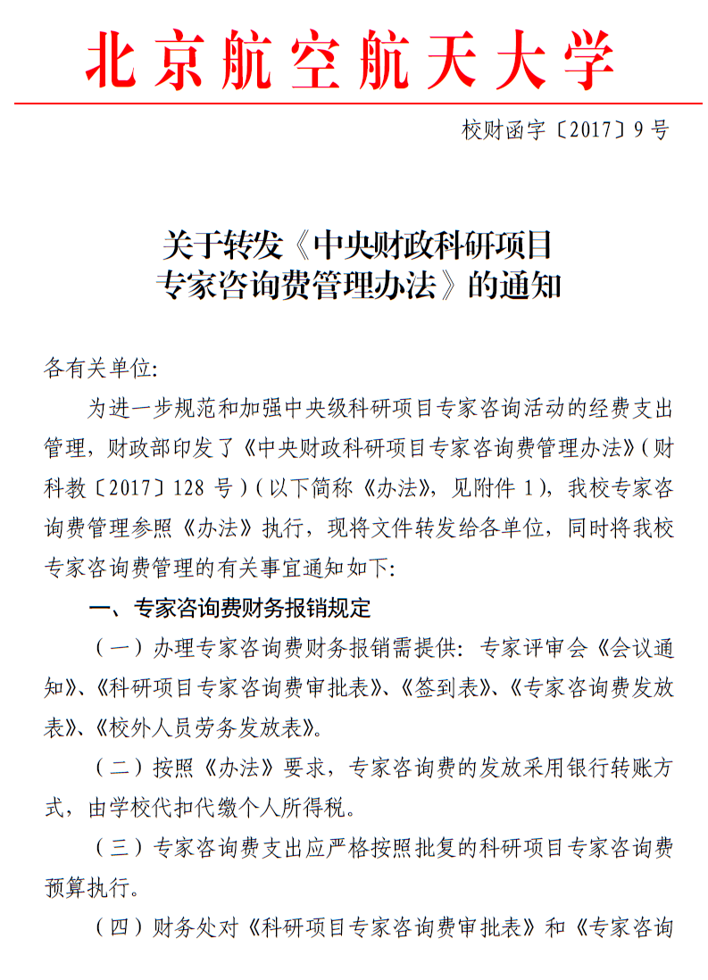关于转发《中央财政科研项目专家咨询费管理办法》的通知